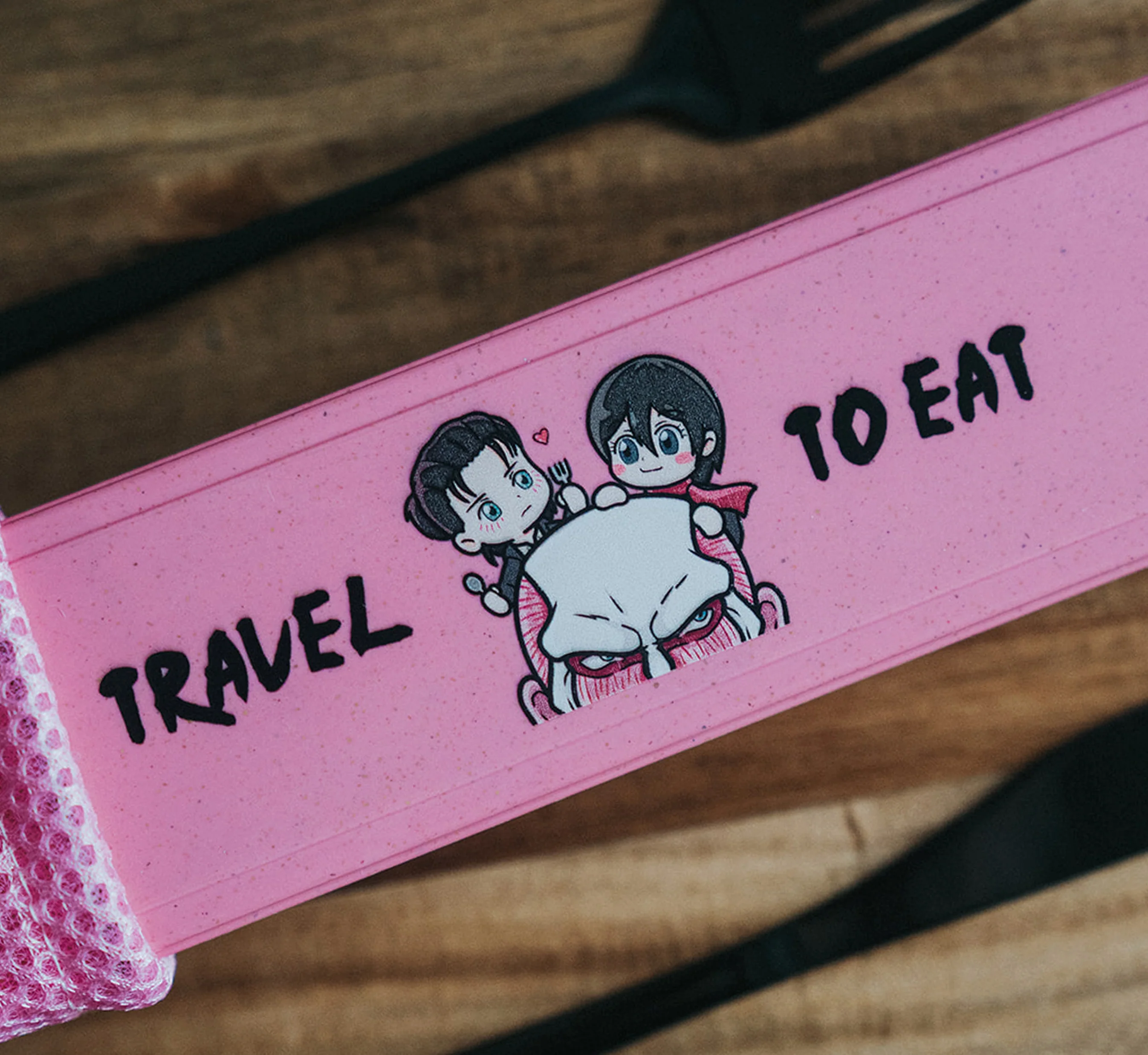 -Includes dinner knife, spoon, fork, straw, chopsticks, boba straw, cleaning tool and pouch. Each item engraved with Attack on Titan logo!